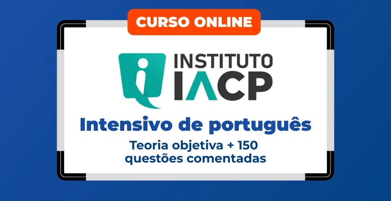 O Intensivo de Português para o INSTITUTO IACP é totalmente voltado para os conteúdos exigidos nos concursos. Com aulas dinâmicas, objetivas e estratégicas, você acelera seu domínio da língua portuguesa de forma prática. Todo o material é atualizado de acordo com os principais editais, garantindo que você estude exatamente o que cai nas provas.